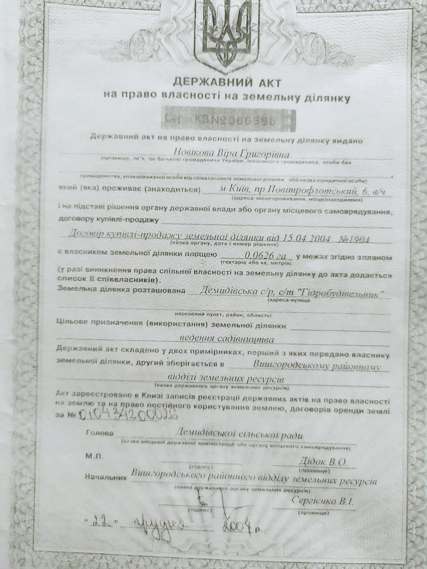 Novikova Vera Hryhorivna